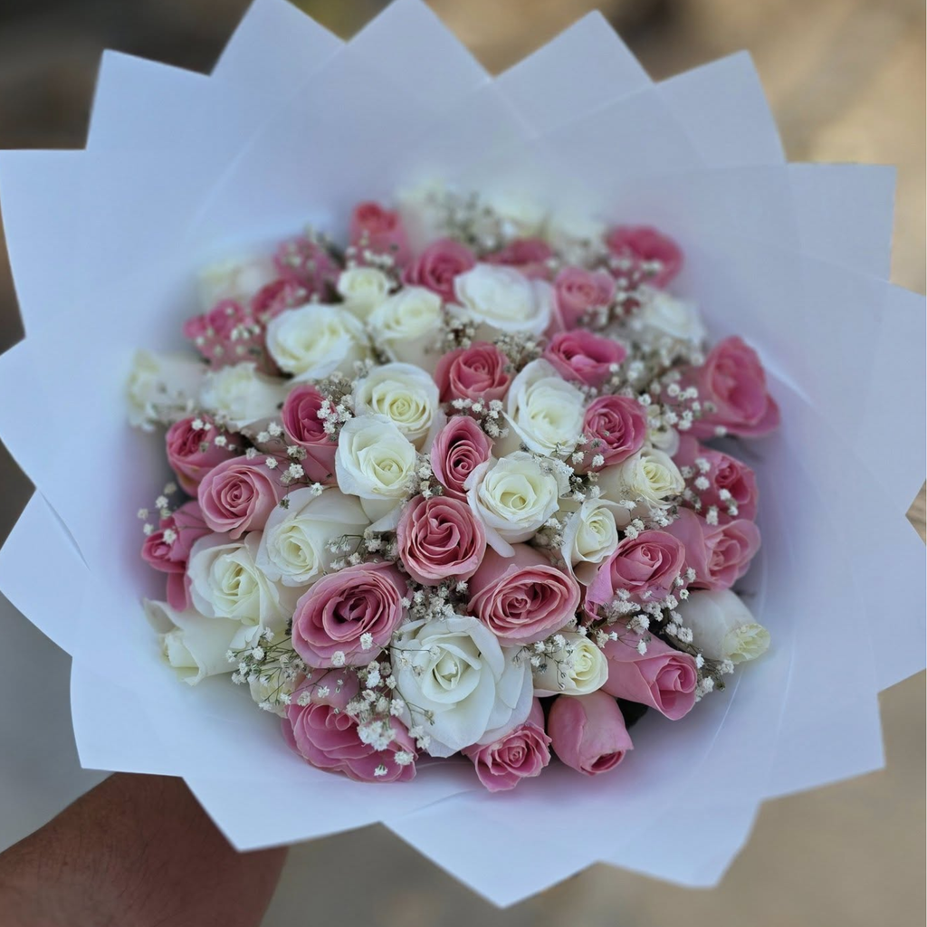 🌹❤️🤍 Ramo Bicolor de 55 Rosas – S/110